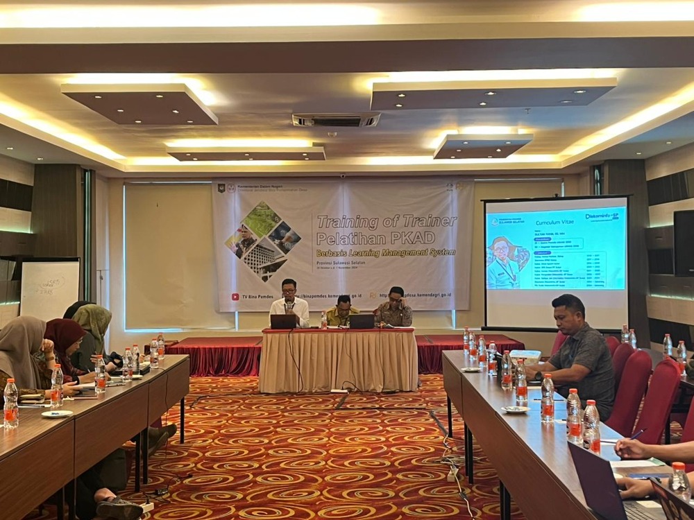 Pelaksana Harian (Plh) Kepala Dinas Komunikasi, Informatika, Statistik, dan Persandian (Diskominfo SP) Sulsel, Sultan Rakib, menjadi narasumber di hari pertama Training of Trainer (ToT) Pelatihan Peningkatan Kapasitas Aparatur Desa (PKAD), yang diselenggarakan Direktorat Jenderal Bina Pemerintahan Desa, di W Three Premier Hotel, Makassar, 28 Oktober – 1 November 2024.